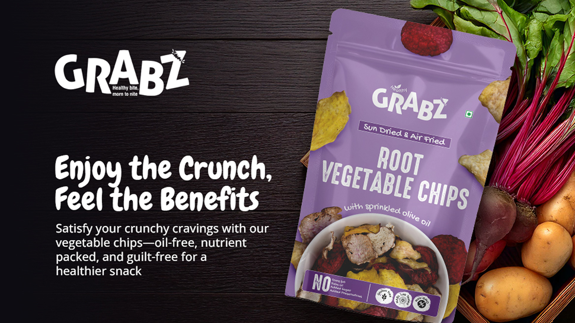 Snack smart with Healthygrabz Chips — crunchy, delicious & guilt-free. Use code: FIRST5 at checkout